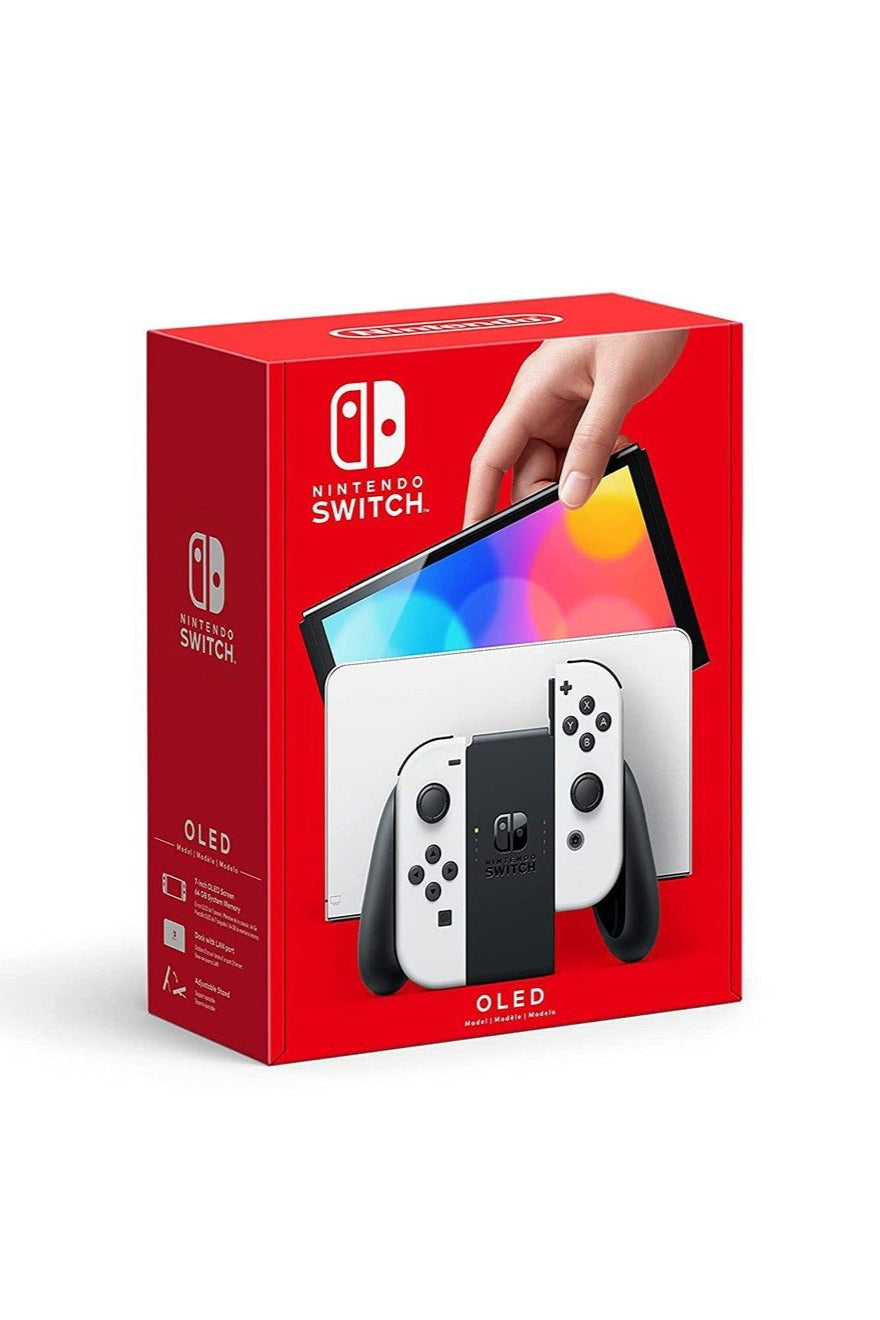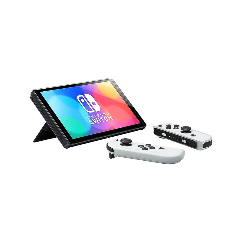 The Nintendo Switch OLED Model features a 7-inch OLED screen, a wide adjustable stand, a wired LAN port in the dock, 64 GB of internal storage, and enhanced audio in handheld and tabletop modes. It's compatible with all existing Nintendo Switch software and Joy-Con controllers.